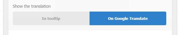 この設定では、ドラッグして選択した後、CTRL キーを押しながらドラッグを解除すると、ポップアップに翻訳内容が表示されます。これがおすすめです。翻訳重視の設定この設定では、選択すれば必ず翻訳されます。ですから、単語に合わせてダブルクリックだと即座に単語の意味を知る事ができます。( 長文は普通に選択 ) 単語重視の設定